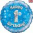 Oaktree 18″ Happy 1st Birthday Blue Holographic