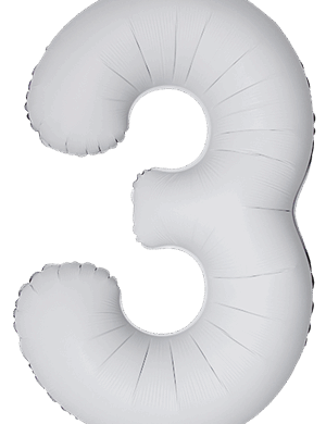 Flexmetal 34 Inch Foil Balloon Matte White Slim Number 3